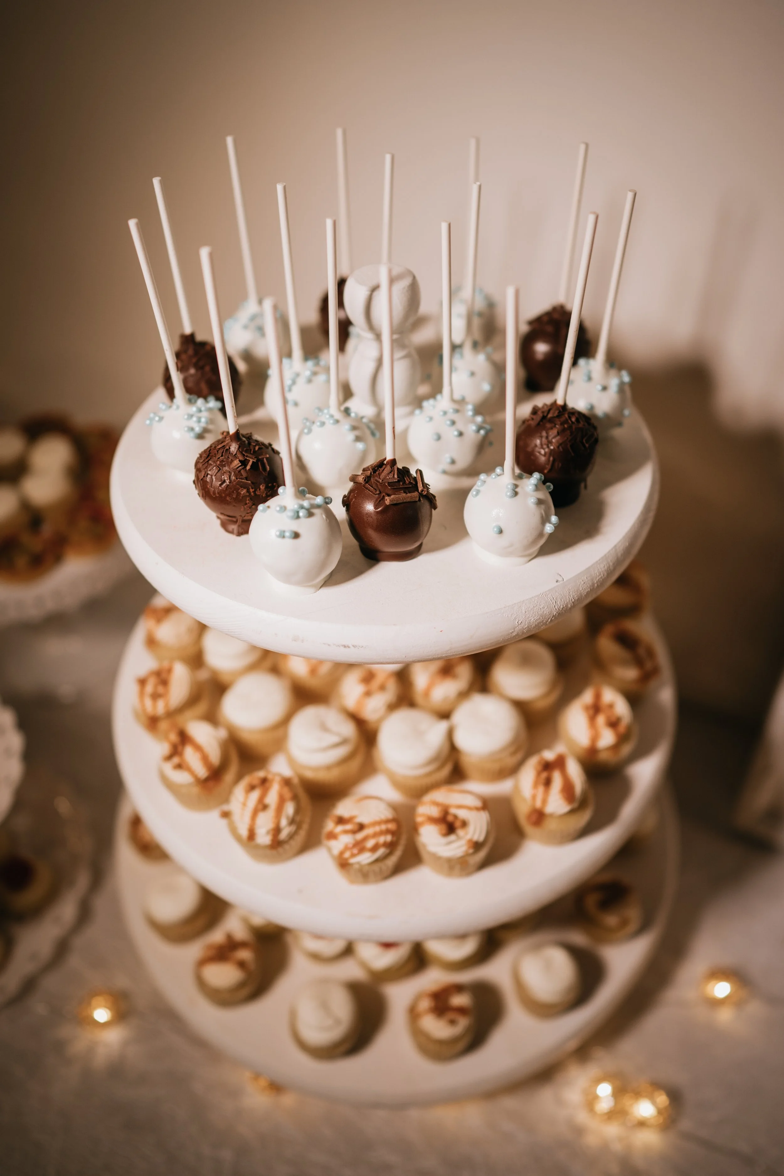 A variety of chefs choice desserts including layer cake, cupcakes, macarons, cake pops, and mini desserts. Your order also includes a 30-minute consultation (in person or Zoom).